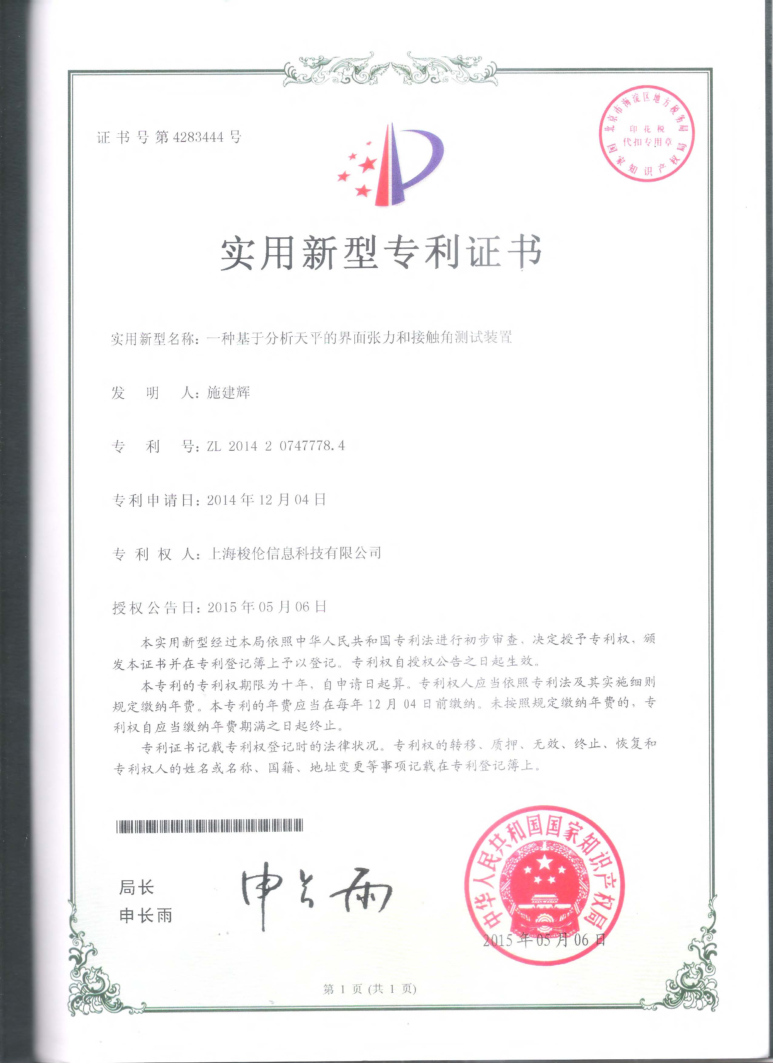 In 2015, USA KINO has developed a new techology for measuring interfacial tension between liquid-fluid system such as water and oil by Wilhelmy plate method. This technology we name it as Wilhelmy plate method based on Young-Laplace equation fitting. We will correct and reduce the effect of contact angle and buoyancy automatically by the equation of Young-Laplace. So, When we measured interfacial tension for fluorocarbon surfactant with surface tension about 18mN/m and water system, we can easy get a result with 2mN/m. And it was almost same as the measured result by pendant drop method by ADSA-RealDrop from KINO. But if you try to measure interfacial tension by Wilhelmy plate before, you may easy get such result as 1-2mN/m or even lower than 0mN/m. How can it be true? So with our new method, you can get a more suitable result. For example, we measured an other sample - aromatic hydrocarbon oil with surface tension about 28.5mN/m. We used Wilhelmy plate method and DuNouy ring method and pendant drop method (ADSA-RealDrop from KINO), results from these three methods almost kept same at 16mN/m.