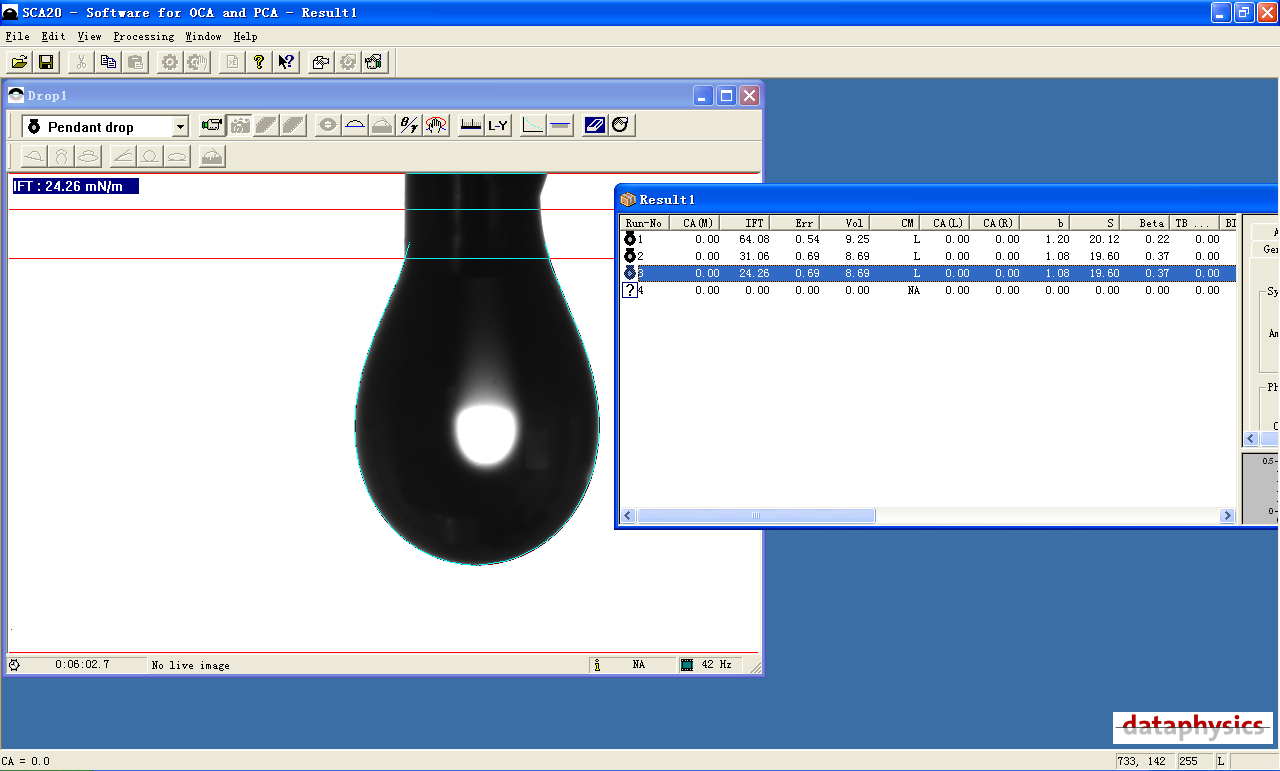 3、软件系统:通过分析德国1、德国2以及科诺RealDrop界面化学分析系统(界面张力以及接触角测试仪软件)。
