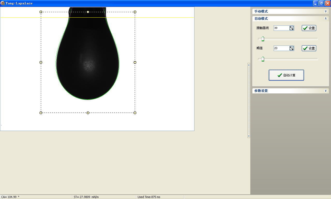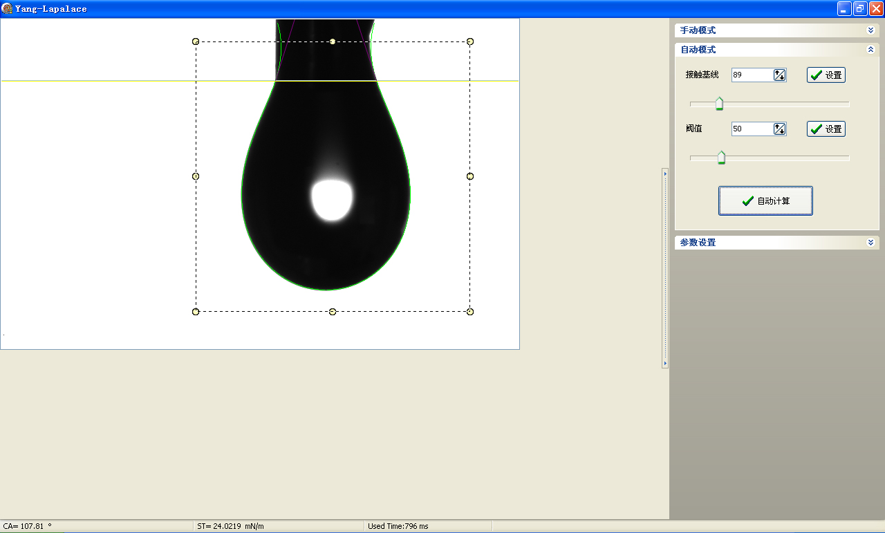 一种真实液滴法(RealDrop?)测试液-气及液-液界面张力值的界面张力仪软件
