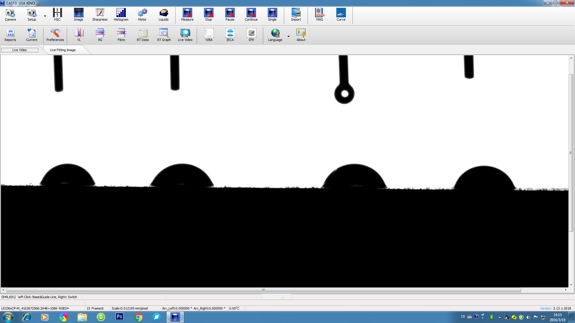 我公司成功开发出同一张图片中一次测试四个液滴接触角的视频光学接触角测量仪,可以大大提升接触角测试效率,同时可以通过一次测试多液滴或多种液滴的接触角值,一次性测试得到表面自由能值(如酸碱法需3个液滴)。本视频光学接触角测量仪涉及的测试技术已经在中国申请专利。