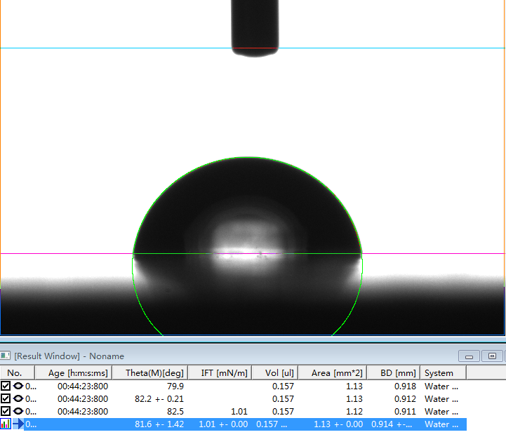 在其他的文章中,我们从理论上进行了现有的圆拟合、椭圆拟合的所谓的“接触角测量仪”和“水滴角测量仪”只能算是数码量角器,本文我们从实际的测值结果来论证,圆拟合、椭圆拟合测试接触角值与Young-Laplace方程拟合测试接触角值或水滴角值的真正区别。