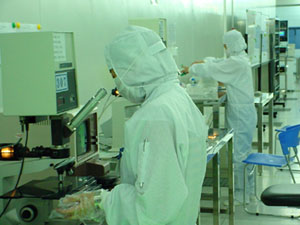 第一条芯片生产线于2001年4月动工兴建,净化面积约3600平方米,运行一条线宽2-5微米、圆片尺寸为5英寸的双极型集成电路芯片生产线,目前实际月产量已超过7.7万片。